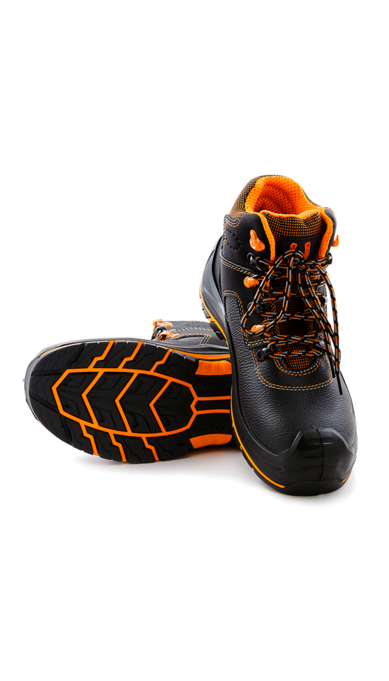- Материал верха– термоустойчивая водоотталкивающая кожа (юфть) толщиной 1,8–2,0 мм. Подошва – двухслойная, устойчивая к воздействию нефти, нефтепродуктов, щелочей концентрации до 20%, повышенных температур. Верхний слой из полиуретана обладает амортизирующими свойствами, гасит ударные нагрузки, а также придает обуви легкость, комфортность и повышенные теплозащитные свойства. Ходовой слой изготовлен из износостойкой, термостойкой (+300°С / 60 с), морозостойкой резины на основе нитрильного каучука с улучшенным сопротивлением скольжению, стойкостью к деформациям, истиранию. Для защиты от ударов в носочной части стопы в обуви применяется композитный подносок (Мун 200), имеющий конфигурацию, препятствующую надавливанию верхнего края на стопу, и оборудованный прокладкой из полиуретана. Серия «PERFECT PROTECTION» изготавливаются с проколозащитными прокладками (стельками), обеспечивающими защиту от проколов и порезов с сопротивлением сквозному проколу пакета деталей низа обуви не менее 1200 Н. ПОДНОСОК: Укрепленный, поликарбонатный Мун 200 Дж ПОДОШВА: новая двухслойная,полиуретан/резина (на основе натурального каучука) обладающая повышенным сопротивлением к скольжению СТЕЛЬКА: Антипрокольная, кевларовая 1200Н