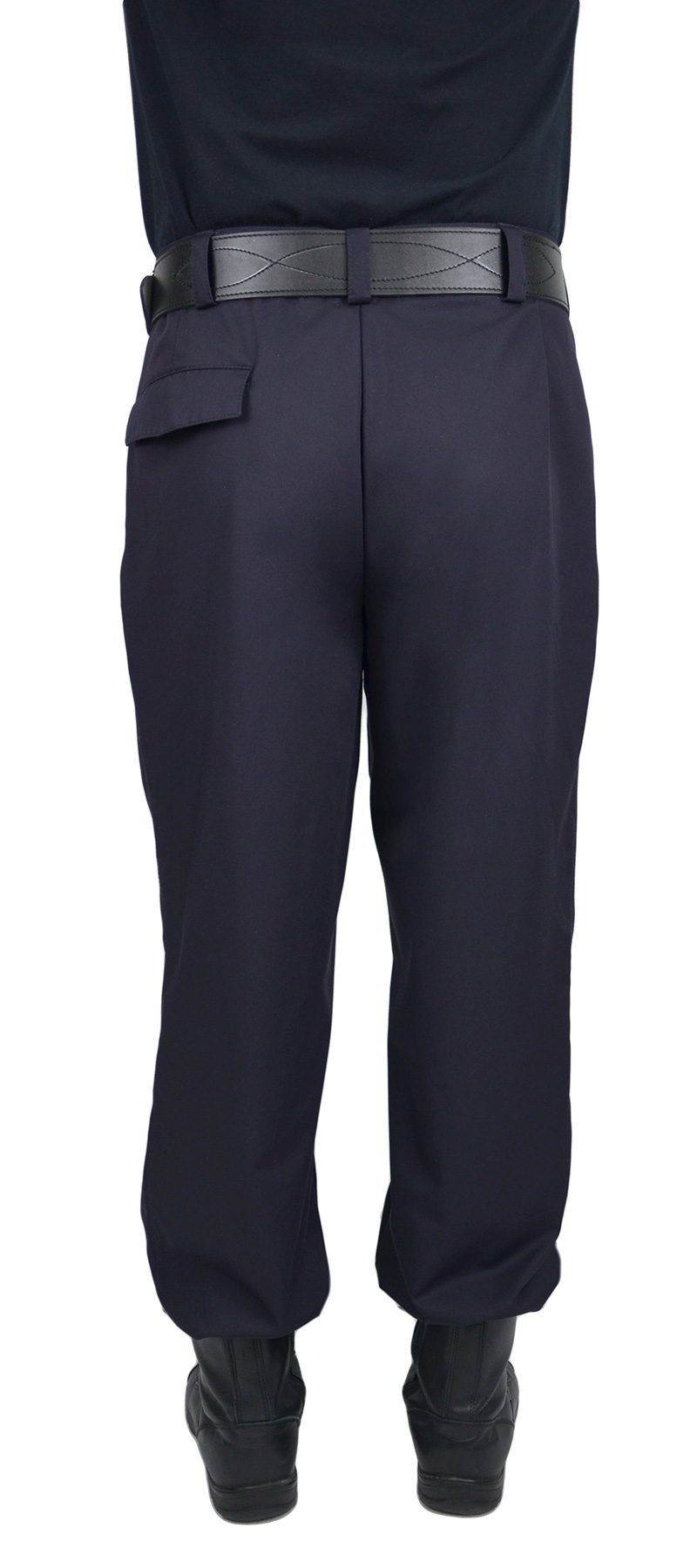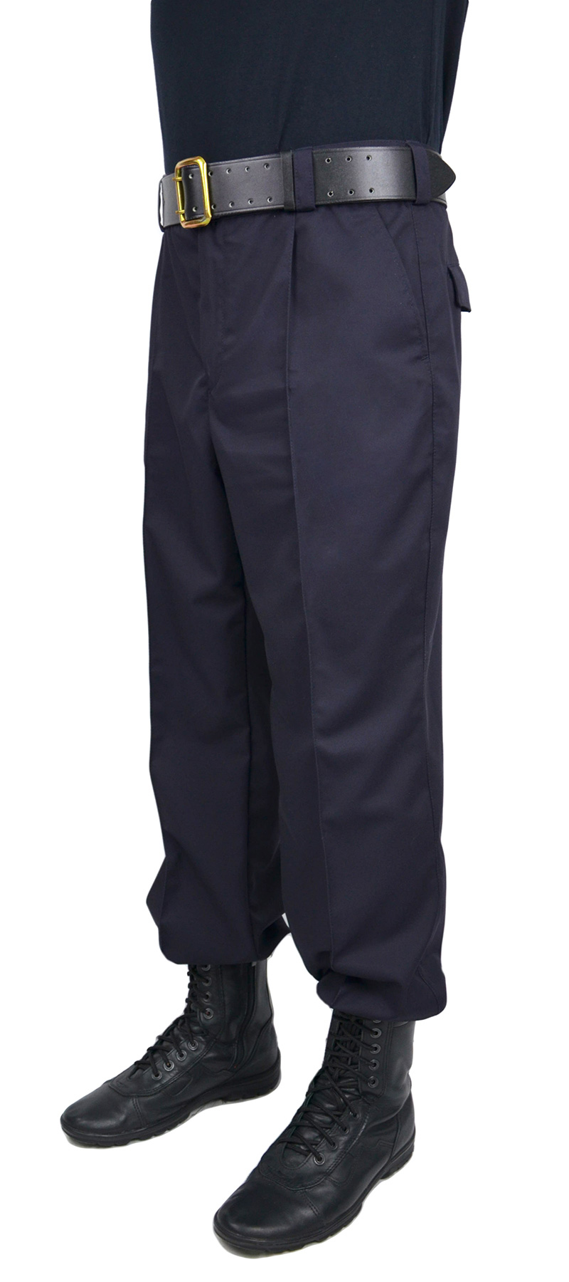 - Брюк с притачным поясом, бокорыми карманами в отрезных частях передних половинок, левым задним прорезным карманом с одной обтачкой и клапаном застегивающимся на внутреннию навесную петлю и пуговицу, пришитую на внешнию стронукармана. Пояс брюк застегивается на петлю и пуговицу, гульфик - на застежку-молнию. Ткань полиэфирно-вискозная арт. ПВ65-008МВД ТУ 8572-195-08836809-2012 изв.1,2,3