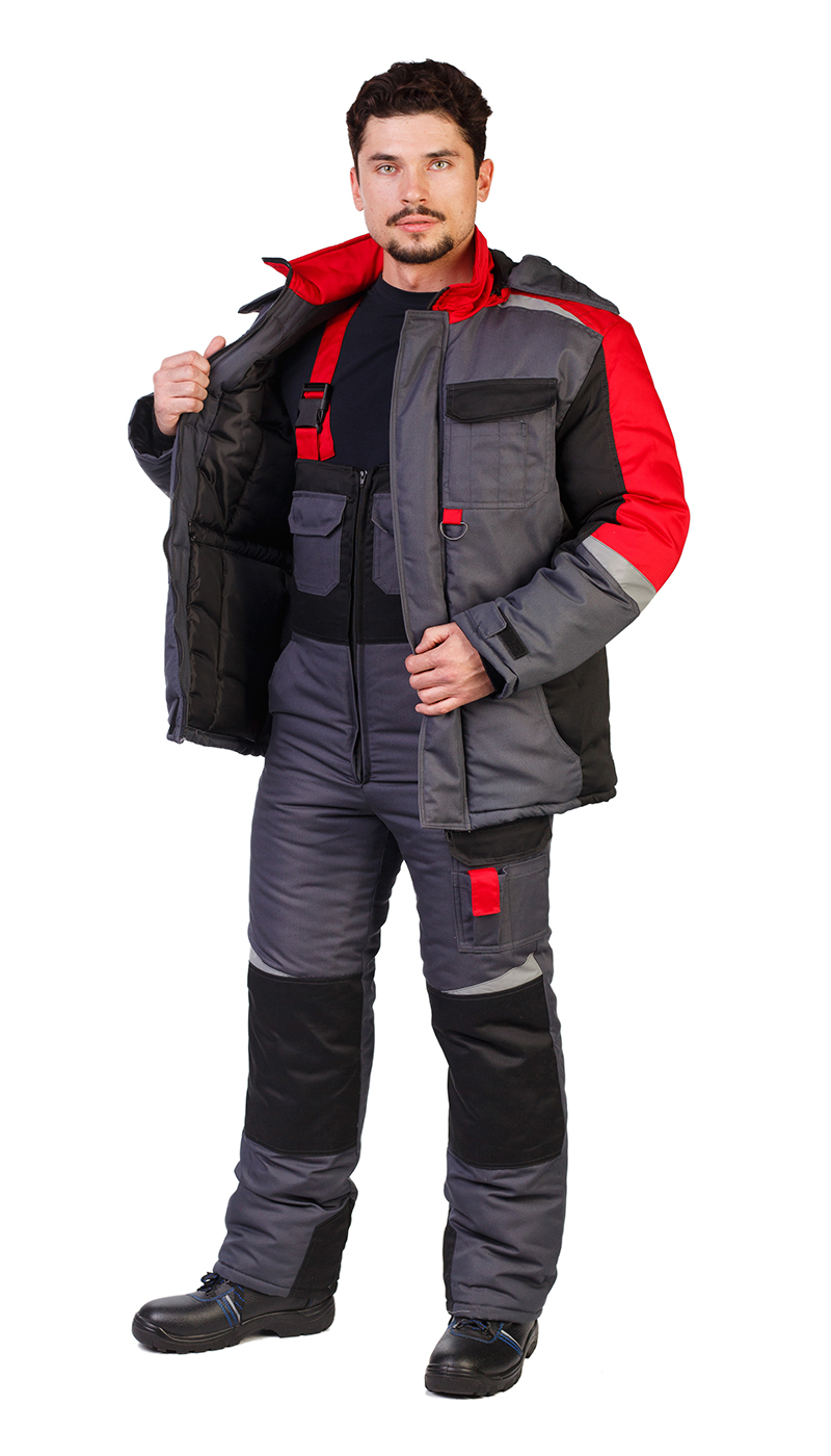 Костюм "Интегратор" зимн. (к,п/к) с СОП тк. твил цв. сер/черн/красн.