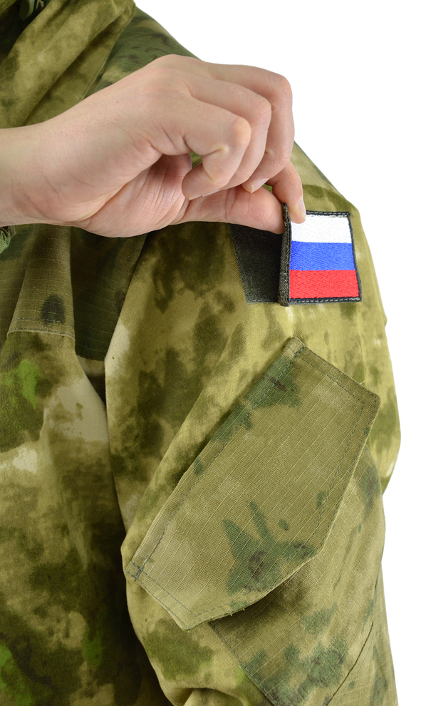 на левом рукаве шеврон-вышивка Триколор на липучке
