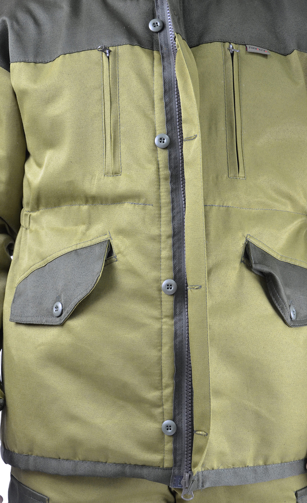 • капюшон двойной, с козырьком, имеет утягивающую кулису для регулировки по объему;