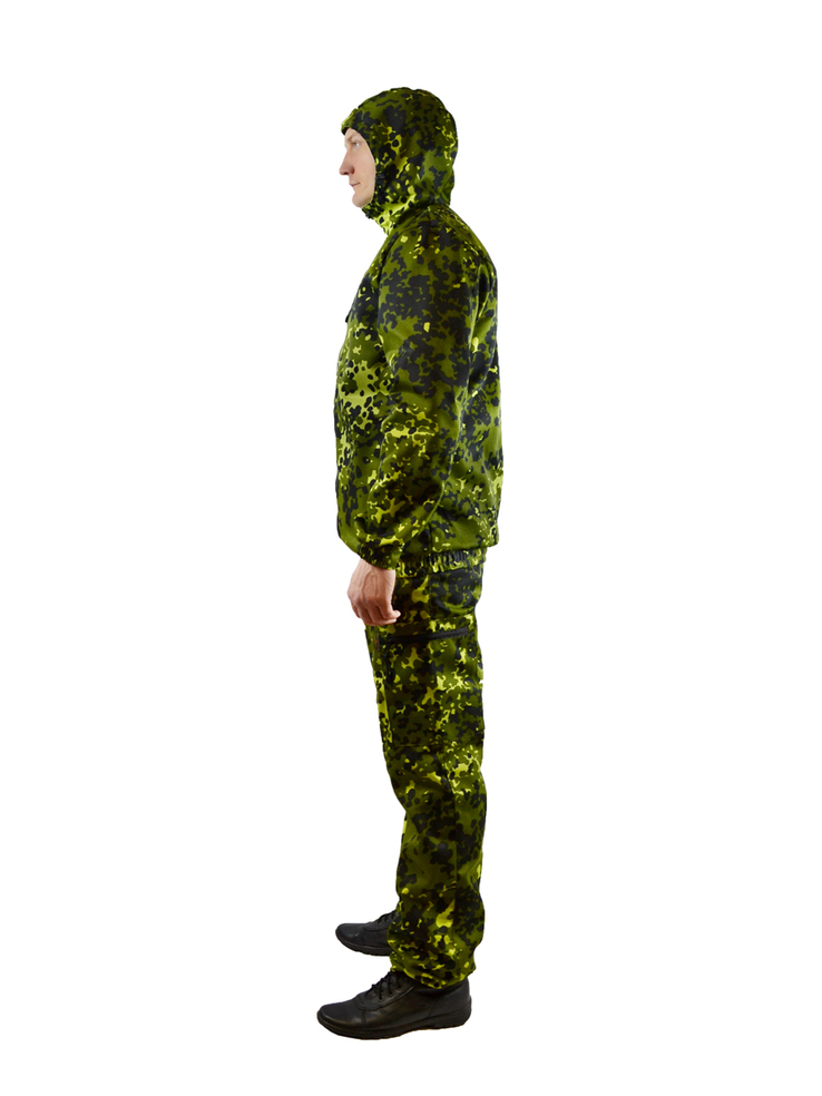 Камуфлированный универсальный летний костюм для охоты, рыбалки и активного отдыха . Состоит из куртки с капюшоном и брюк.