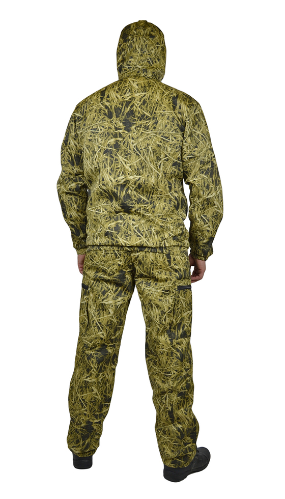 Камуфлированный универсальный летний костюм для охоты, рыбалки и активного отдыха . Состоит из куртки с капюшоном и брюк.