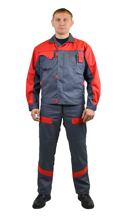 Костюм мужской рабочий "Экспресс" летний куртка, п/к ТЕМНО-СЕРЫЙ с красным