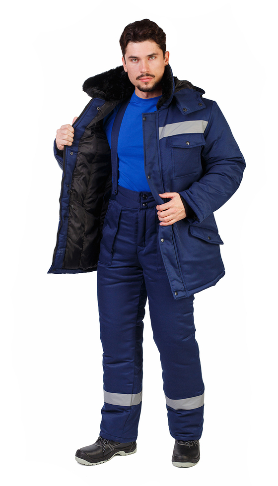 Костюм мужской рабочий "Мастер Норд" зимний куртка, брюки т-синий и СОП тк.смесовая