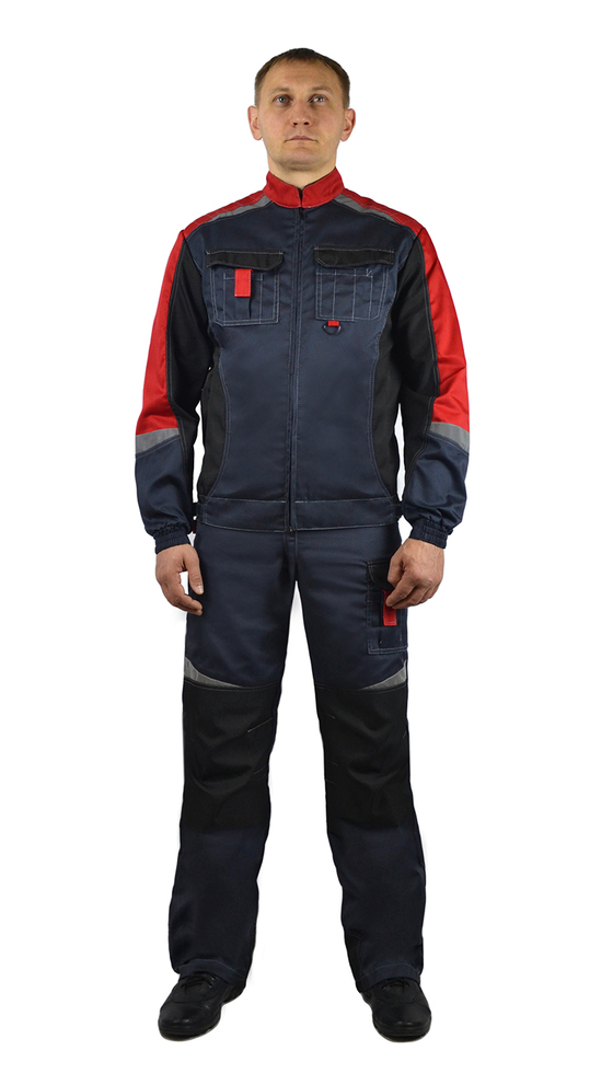 Костюм мужской рабочий "Мега" летний куртка, брючный сер с черн, красн и СОП тк.Твилл