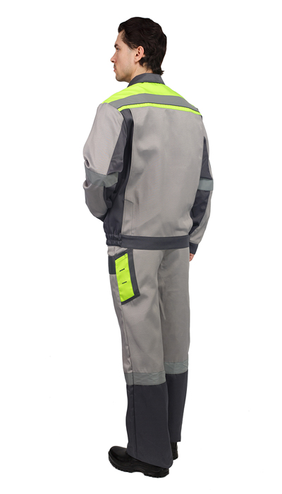 Костюм мужской рабочий "Респект" летний куртка, п/к св.серый с т-сер и лимонной отделкой