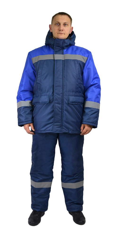 Костюм мужской рабочий "Статус"зимний куртка,п/к тк. Оксфорд т-синий с васильковым и СОП