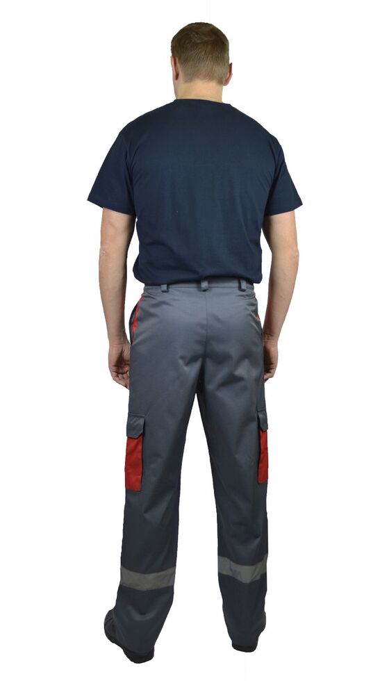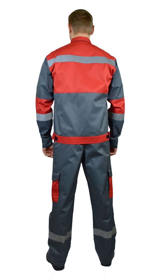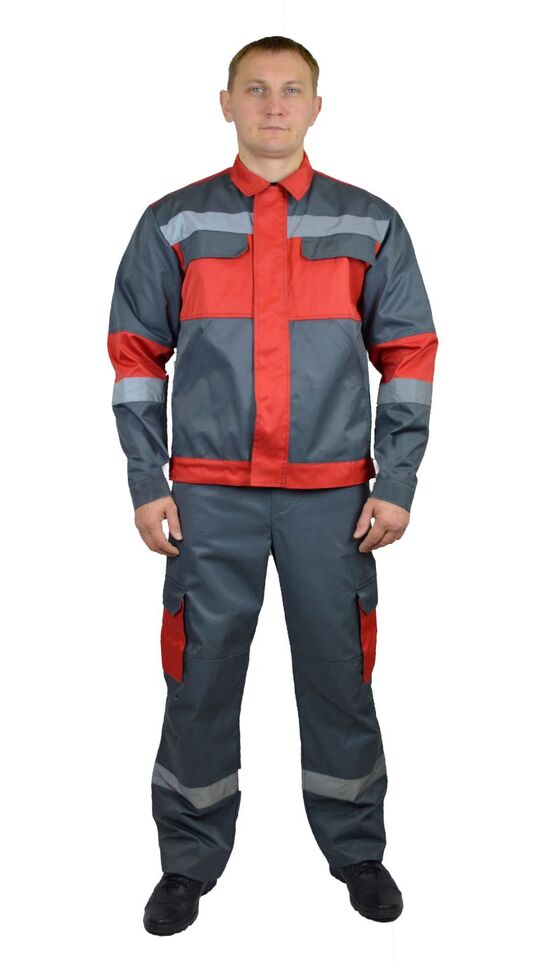 Костюм мужской "Спец-ЭКО" летний куртка, брюки т. серый с красной отделкой тк. Смесовая Моготекс