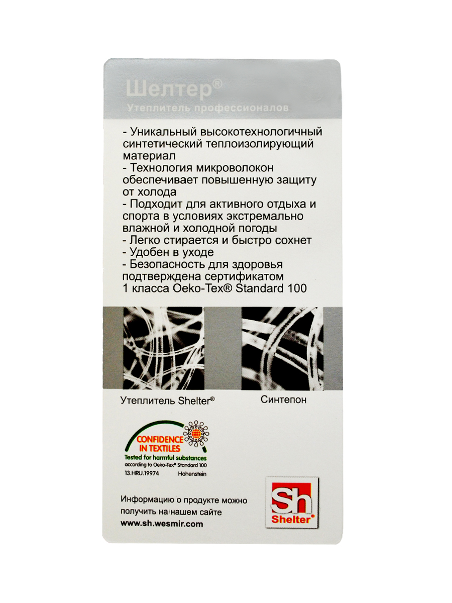 Теплый, легкий и супердышащий утеплитель Шелтер Спорт даже в условиях экстремально влажной и холодной погоды идеально подходит для активного отдыха и спорта. Сочетание микроволокон разной толщины повторяют структуру натурального пуха, обеспечивая высокие свойства теплоизоляции и компрессионной объемности даже после повторных стирок.