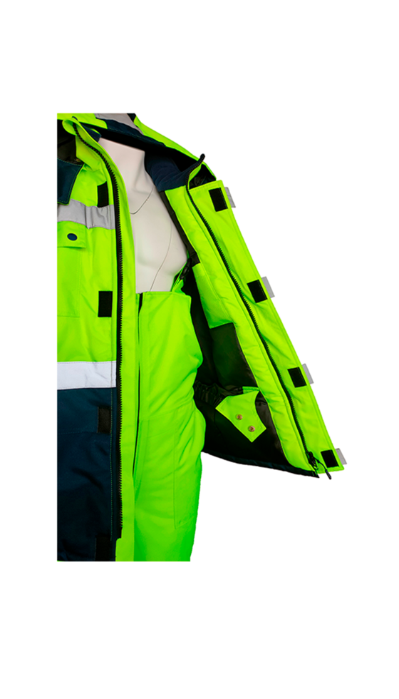 - Костюм состоит из удлиненной куртки и полукомбинезона. Куртка удлиненная, прямого силуэта с застежкой на молнию, ветрозащитной планкой на кнопках. Воротник-стойка на флисовой подкладке, съемный капюшон на молнии. Регулировка капюшона куртки шнуром с фиксатором. Регулировка куртки по талии и низу. Световозвращающие полосы 50 мм по линии кокетки, рукавам, низу куртки. Накладной карман на груди с застежкой на контактную ленту. Многофункциональные карманы. Полукомбинезон с регулировкой эластичной резинкой и фастексами, многофункциональные карманы, Светоотражающая лента по низу изделия ТКАНЬ ВЕРХА: «Nordika» полиэфир ТПУ мембрана, ВО пропитка состав: 100% ПЭ, пл. 170 г/м2±5г/м2 ТКАНЬ ПОДКЛАДОЧНАЯ: «Тафета 190», состав: 100% ПЭ, пл. 55 г/м2±10г/м2 УТЕПЛИТЕЛЬ: «Слайтекс»-120г/м2, в куртке 480 г/м2 (4слоя корпус, 3слоя рукав), в полукомбинезон 360 г/м2(3слоя) Комплект поставки Куртка / Полукомбинезон Ткань верха Nordika Ткань подкладочная Тафета Утеплитель Слайтекс Класс защиты 3 класс защиты от пониженных температур Климатический пояс IV (особый) климатический пояс Центральная застежка на молнию трактор №8 - 2 замка ЦветЛ имонный с темно-синим ГОСТ12.4.303-2016, ГОСТ 12.4.281-2014 ТР ТС 019/2011
