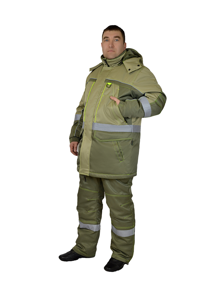 Костюм зимн. "Алтай" (к,п/к) с СОП тк. смесовая цв. св-оливк/т-оливк