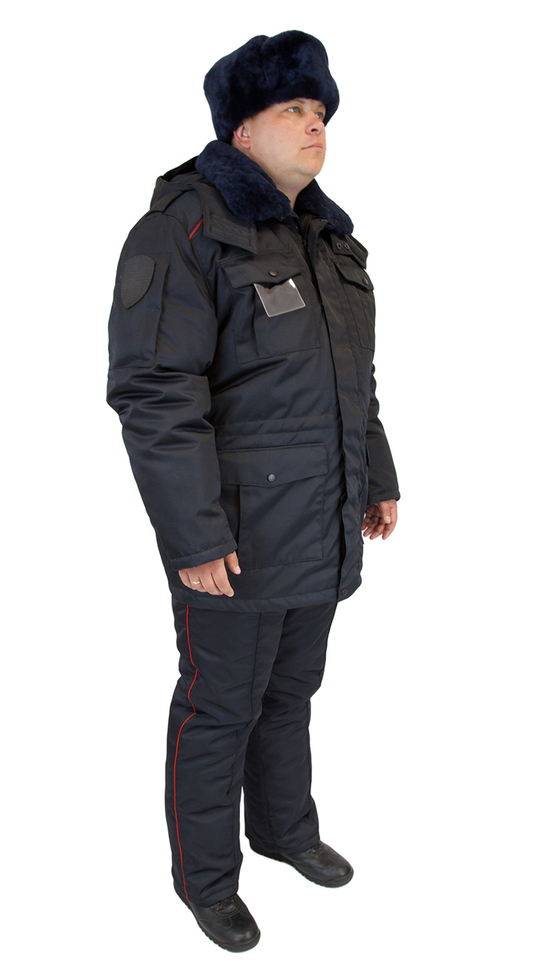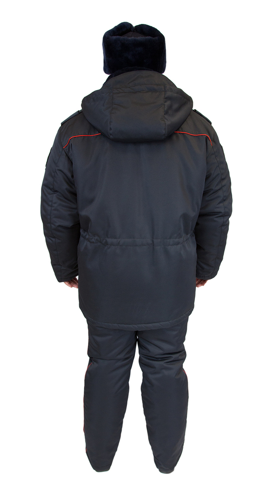 Костюм зимний для сотрудников ОВД состоит из утепленных куртки и полукомбинезона со съемными утеплителями.