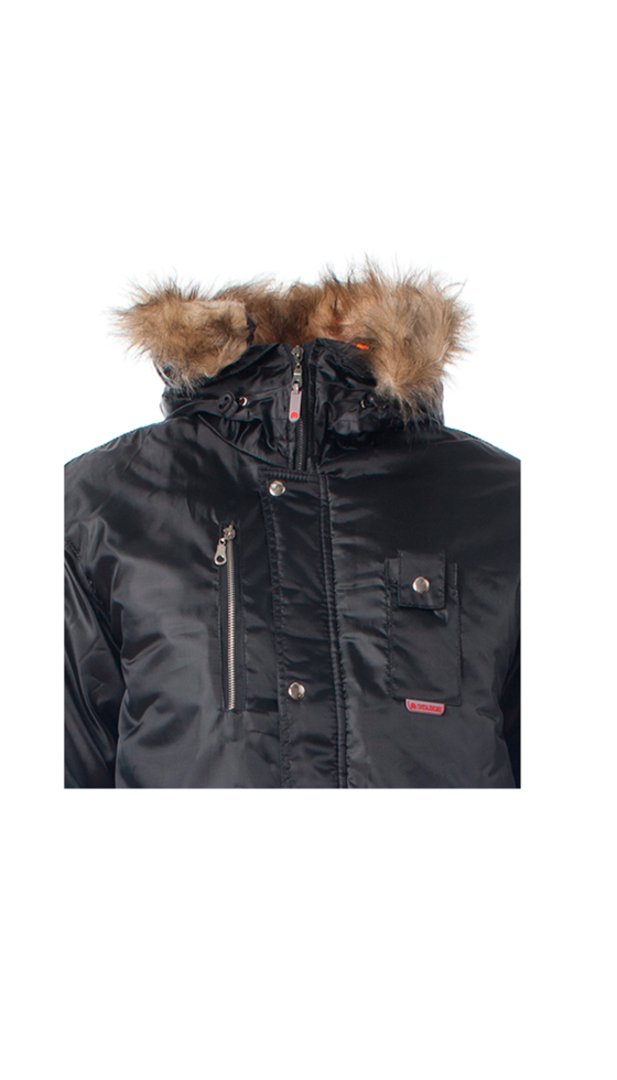 - Укороченная куртка на поясе с эластичной резинкой. Ветрозащитная планка на кнопках. Притачной капюшон со съемной меховой опушкой ТКАНЬ ВЕРХА: «Оксфорд 210» с полиуретановым водонепроницаемым ветрозащитным покрытием (100% ПЭ, пл. 95±10гр/м²) УТЕПЛИТЕЛЬ: «Синтепон» – 3слоя, в куртке – 450 г/м2( 3 слоя корпус, 2 рукава) Ткань верха Оксфорд Ткань подкладочная Полиэфир 100% Утеплитель Синтепон Класс защиты 2 класс Климатический пояс III-й Манжет С частичной стяжкой на эластичную резинку Центральная застежка Молния металл №5 Цвет Черный ГОСТ 12.4.303-2016 ТР ТС 019/2011