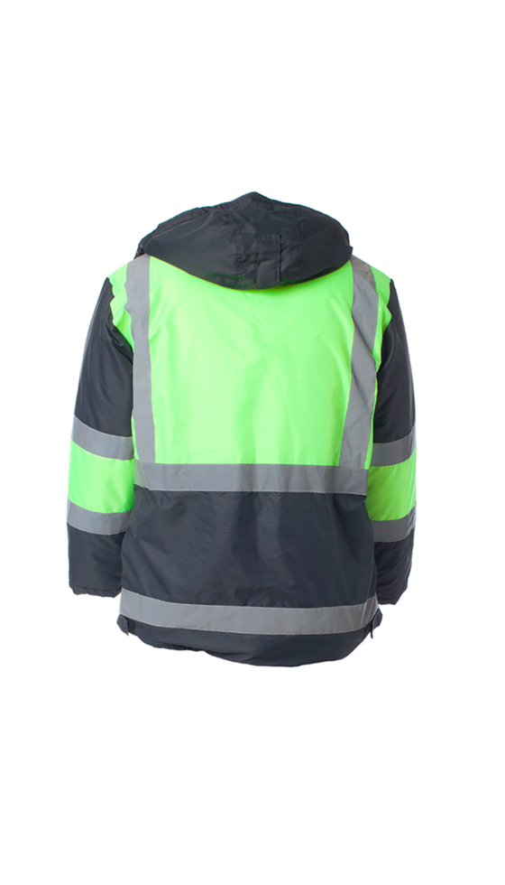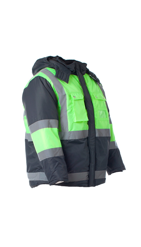 - Куртка удлиненная прямого силуэта. Ветрозащитная планка с застежкой на ленту-контакт. Нагрудный карман с окном для бейджа и объемный карман под рацию. Регулировка прилегания куртки по талии по низу куртки. Съемный капюшон из флиса с регулировкой. В куртке используется светоотражающая лента 50 мм ТКАНЬ ВЕРХА: «Кошачий глаз» с полиуретановым водонепроницаемым ветрозащитным покрытием (100% ПЭ, пл. 165±10 гр/м²) ТКАНЬ ОТДЕЛОЧНАЯ: «Оксфорд 210» с полиуретановым водонепроницаемым ветрозащитным покрытием (100% ПЭ, пл. 95±10 гр/м²) УТЕПЛИТЕЛЬ: «Синтепон» – 150 гр. (3 слоя), в куртке – 360 г/м2 ( 3 слоя корпус, 2 слоя рукава) Ткань верха Оксфорд Ткань подкладочная Полиэфир 100% Утеплитель Синтепон Класс защиты 3 (в составе комплекта с брюками) Климатический пояс IV-й (в составе комплекта с брюками) Манжет Внутренний трикотажный Цвет Темно-серый с лимонным ГОСТ 12.4.303-2016 ТР ТС 019/2011