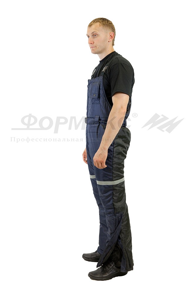 Полукомбинезон мужской прямого силуэта с бортовой застежкой на молнию, с 4 шлевками.