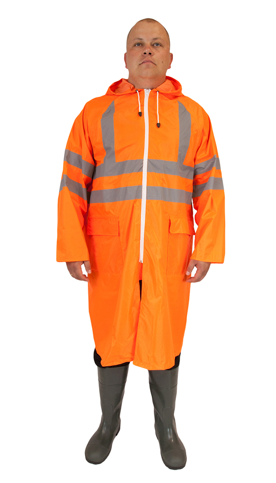 - Изготовлен из п/э ткани с ПВХ покрытием плотностью 200 г/м2. Застегивается на молнию с ветрозащитным клапаном, двумя карманами и капюшоном. Швы проклеены. Отличные влагозащитные и люминисцентные свойства позволят использовать его для дорожников. 2 СОП горизонтальных и 2 СОП вертикальных.
