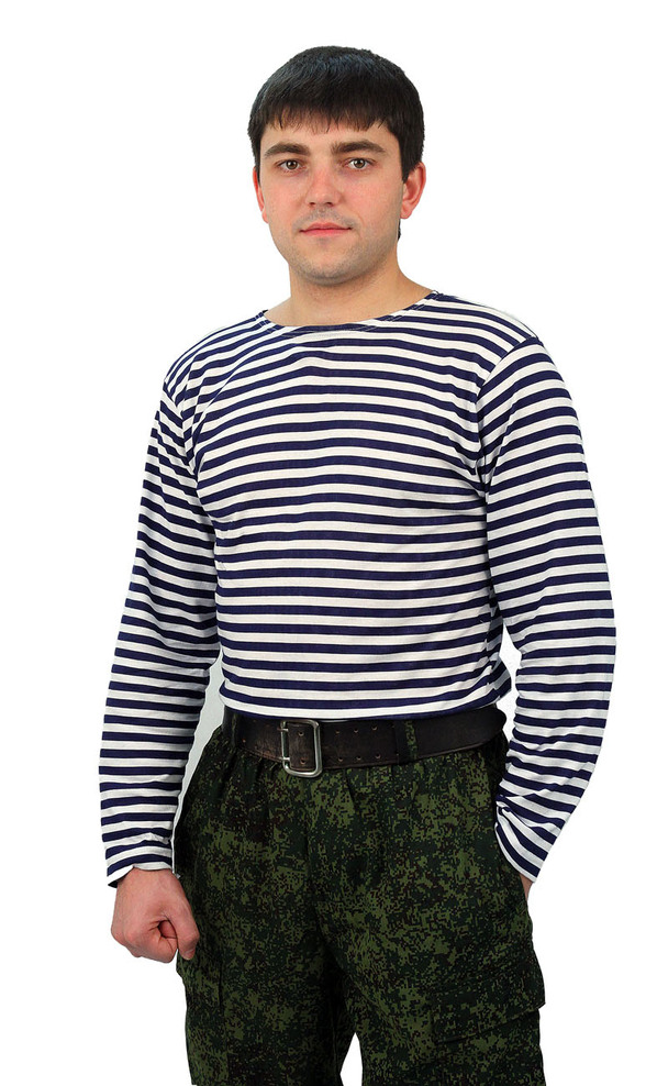 - Зимняя тельняшка с начесом-флотская нательная фуфайка с длинными рукавами и темно-синими полосками.