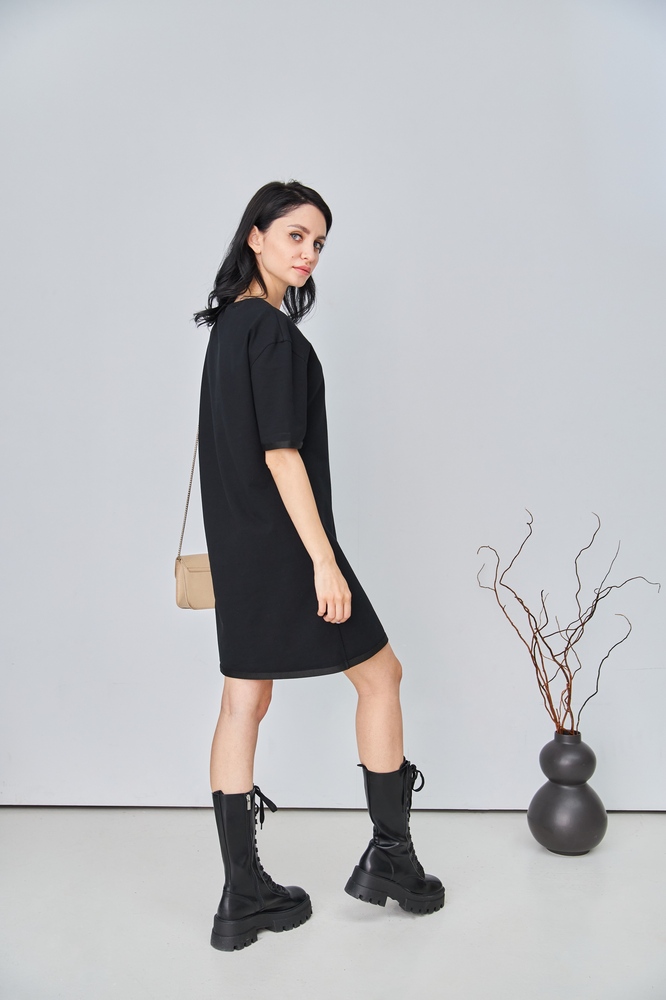 - Трикотажное платье-футболка средней длинный от российского бренда MARIMAR. Платье-футболка черного цвета. Стильная и лаконичная модель. Натуральная ткань позволит чувствовать себя в нем комфортно. Платье отлично сочетается как с класической, так и с спортивной обувью. Модель идеально подойдет в офис, для повседневной жизни, праздника или вечеринки. Состав: 95% хлопок, 5% лайкра. Размер на модели: S Рост модели: 166 см. Состав: 80% хлопок, 14% полиэстер, 6% лайкра