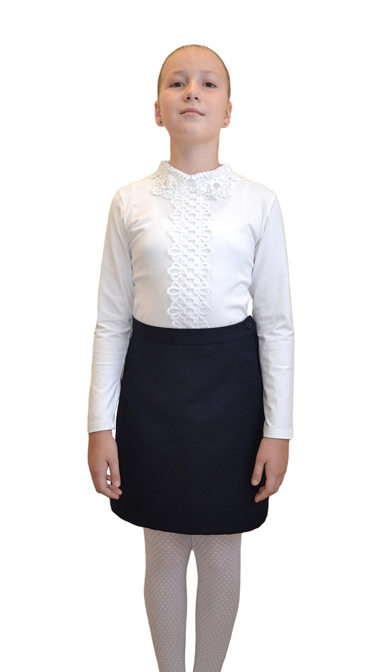 Юбка для девочки на подкладке полуприлегающего силуэта с застежкой на тесьму молнию в левом боковом шве и петлю и пуговицу на поясе.