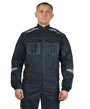 Костюм мужской рабочий "ПРОФИ" тк.Твил ПЭ летний куртка, п/к т-серый с черным с СОП