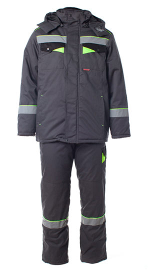 Костюм утеплённый мужской «КОРВЕТ» с СОП куртка, брюки цв. т.серый с чёрным и лимон