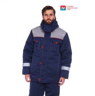 Костюм мужской рабочий "Компакт Плюс" зимний куртка, п/к т. синий с серым тк.Смесовая 4 кл. пояс
