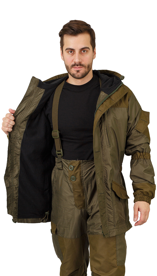 - куртка с подкладкой из флиса (спинка,полочки,капюшон) и из подкладочной ткани тафета с термостежкой (рукава)
