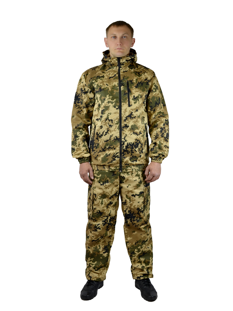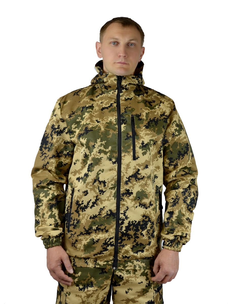 Камуфлированный универсальный летний костюм для охоты, рыбалки и активного отдыха . Состоит из куртки с капюшоном и брюк.