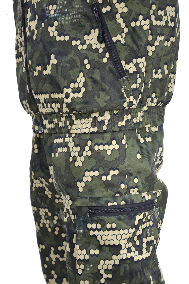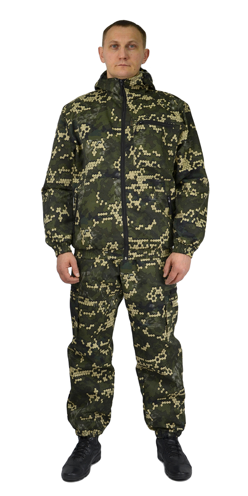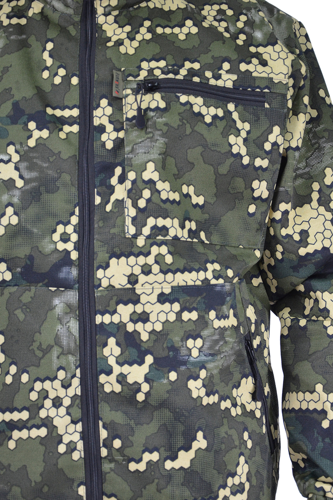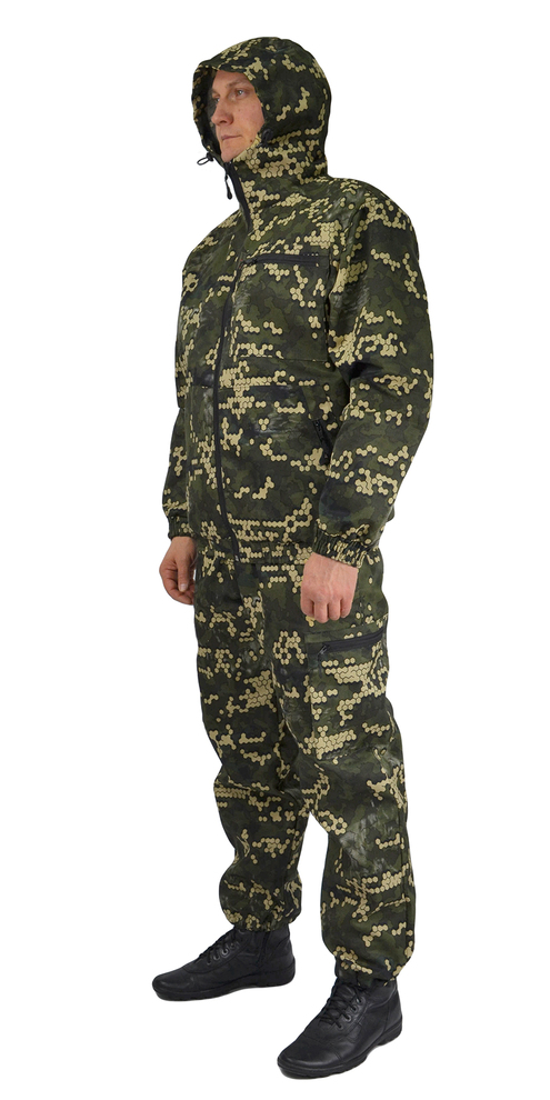 Камуфлированный универсальный летний костюм для охоты, рыбалки и активного отдыха . Состоит из куртки с капюшоном и брюк.