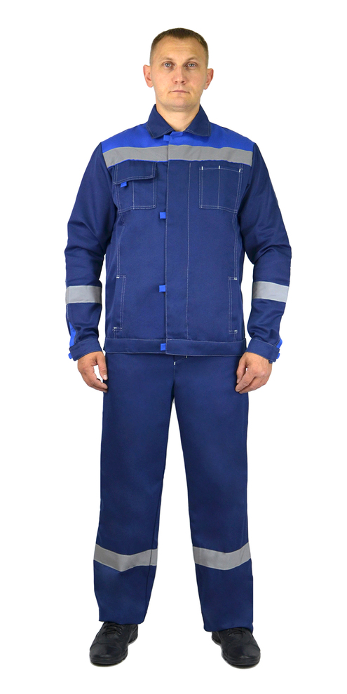 Костюм мужской рабочий "Фаворит" летний куртка, Брючный т.синий с васильковым и СОП тк. Смесовая