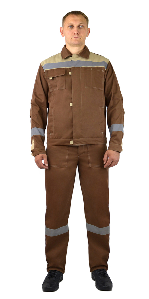 Костюм мужской рабочий "Фаворит" летний куртка, П/К т.коричневый с бежевым и СОП, тк. Твилл