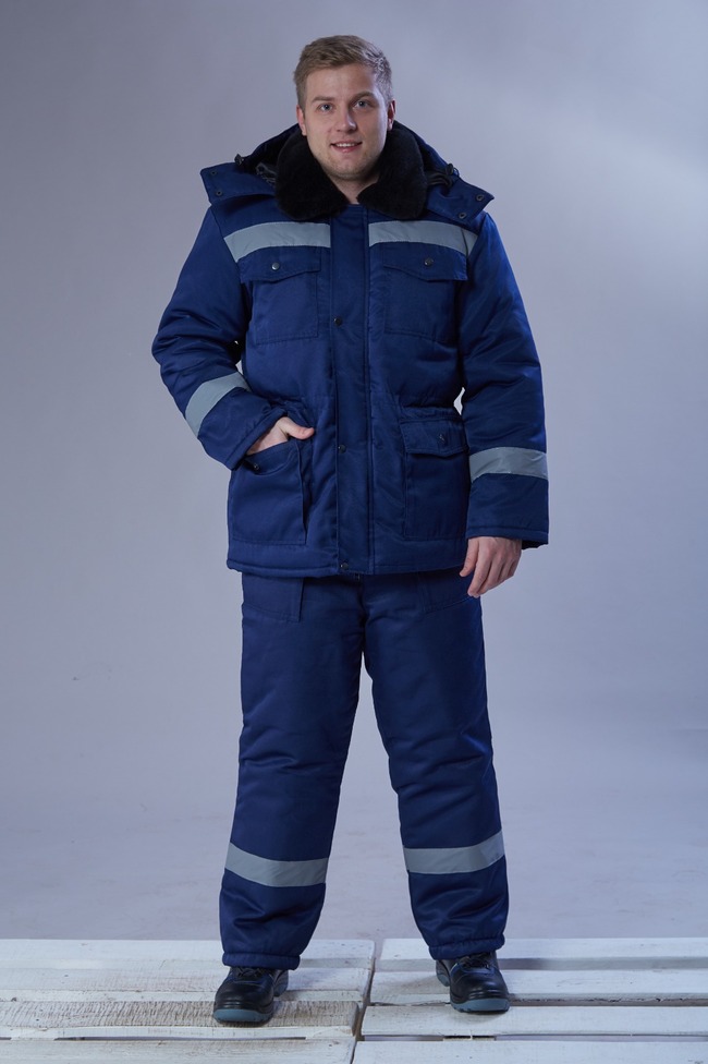 Костюм мужской рабочий "Мастер-Д" зимний куртка, брюки т. синий тк.Смесовая