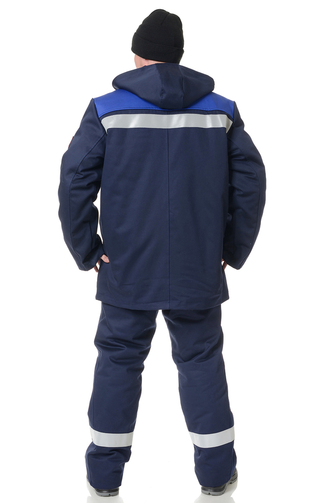 - Комплектация: куртка, брюки Куртка: прямого силуэта, с центральной потайной застежкой на пуговицы, карманами в боковых швах с отложным воротником. Накладки кокетки спинки, переходящие на полочки выполнены из огнестойкой светоотражающей ленты XM-6011 50 мм. Под кокеткой спинки расположены вентиляционные отверстия. На рукаве имеется шеврон, обозначающий спецсвойства костюма. Брюки: прямого силуэта с застежкой на петли и пуговицы в боковых швах, с притачным регулируемым поясом. По низу брюк проходит огнестойкая светоотражающая лента шириной 50 мм. Ткань: Гефест пропитка ТНРС (Пробан) цвет: синий с васильковой кокеткой . Состав: 100% хлопок, Плотность: 420 гр. Лента светоотражающая по ГОСТ ГОСТ Р 41.104-2002 ПОЗИЦИЯ ПОСТАВЛЯЕТСЯ ПОД ЗАКАЗ.