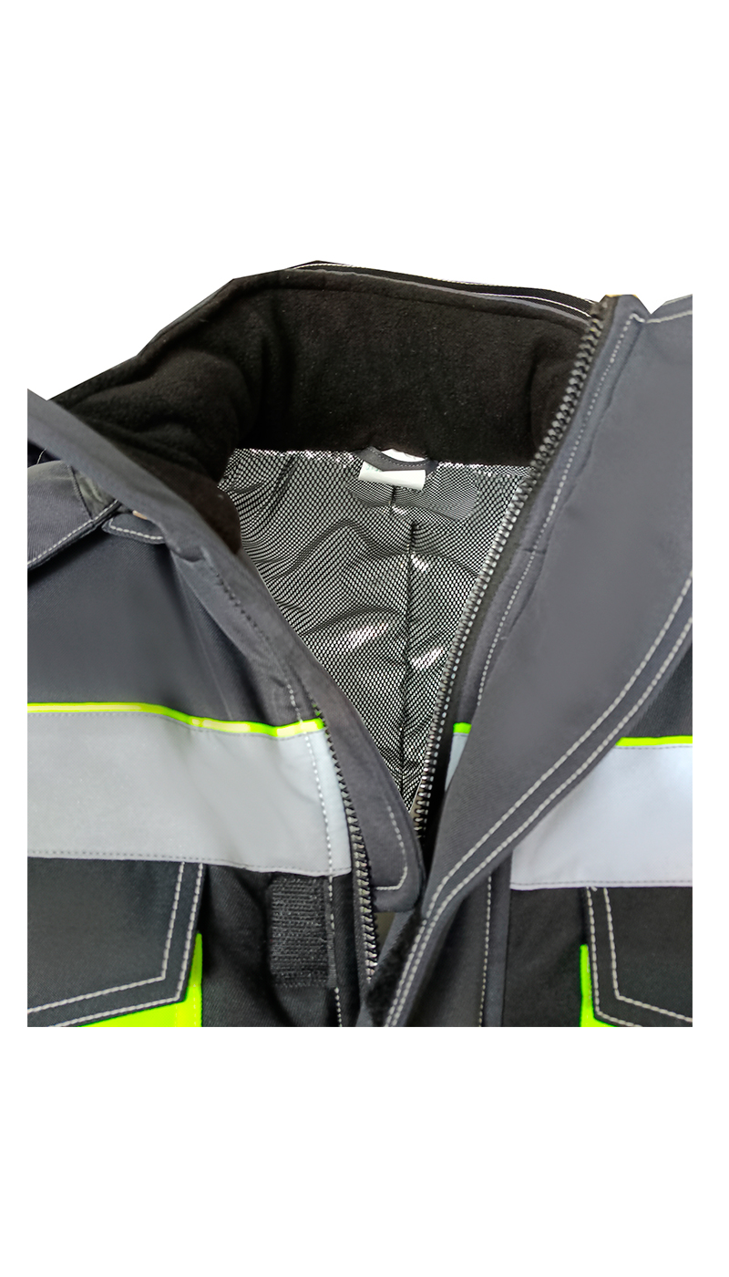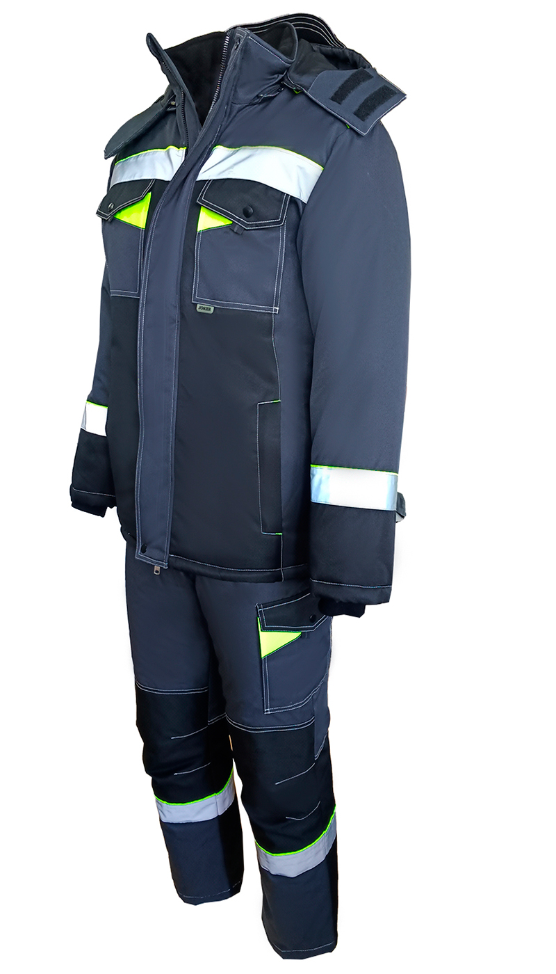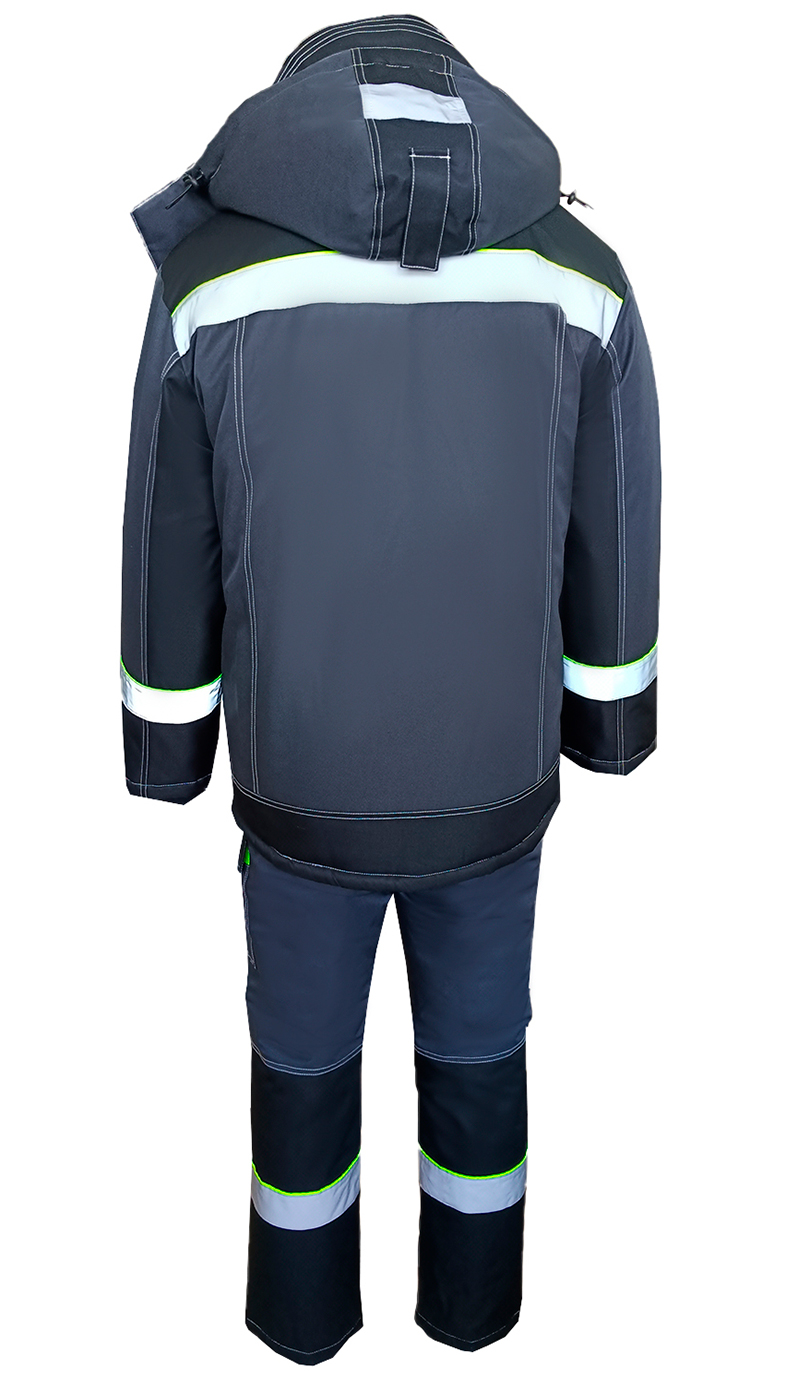 - Куртка: • с центральной застежкой на молнию, закрытую ветрозащитной планкой на липучку и кнопкой с пластиковой шляпкой • с нагрудными накладными карманами с объёмом и фигурными клапанами на кнопках • с нижними карманами в рельефах полочек на тесьму «молния» • с внутренним накладным карманом на тесьму «молния» и карманом для документов из тк. «Сетка» • с внутренний подпланкой, закрывающей контакт молнии с лицом • съёмный капюшон с регулировкой объёма по лицевой и затылочной части и возможностью использования капюшона на каску • трикотажные манжеты по низу рукавов Брюки: • с застежкой гульфика на молнию и съёмными бретелями • пояс на пуговицах со шлевками • с различными многофункциональными карманами • анатомический крой колена • В области колена дополнительный объем и подрез на задних половинках для удобства • в костюме используется световозвращающия лента 50 мм Комплект поставки Куртка, Брюки Ткань верха «NORDIKA» полиэфир ТПУ мембрана Ткань подкладочная Ткань подкладочная + фольгированная подкладка: состав: 100% ПЭ Утеплитель Состав: 100% ПЭ - 150г/м, в куртке 450 г/м (3 слоя в корпусе, 2 слоя в рукавах), брюки - 200 г/м Класс защиты 4 класс защиты от пониженных температур Климатический пояс Особый климатический пояс Центральная застежкана молнию трактор №8 - 2 замка «Акулий зуб» (звено серебро) Состав 100% ПЭ, пл. 170 г/кв.м. Цвет серый /черный /лимон ГОСТ 12.4.303-2016 ТР ТС 019/2011