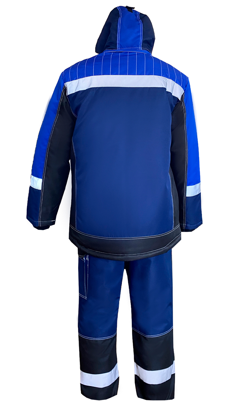 - Куртка: • с центральной застежкой на молнию, закрытую ветроза- щитной планкой на липучку и кнопками с пластиковой шляпкой • с нагрудными накладными карманами с объёмом и фигурными клапанами на липучку • нижними прорезными карманами на тесьму «молния» в рельефных швах • с внутренним накладным карманом на тесьму «молния» и карманом для документов из полотна «Сетка» • съёмный капюшон с регулировкой объёма по лицевой и затылочной части и возможностью использования капюшона на каску • трикотажные манжеты по низу рукавов • с фигурной линией низа по спинке Полукомбинезон: • с центральной застежкой на тесьму-«молния» • с нагрудными накладными карманами с объёмом и фигурным клапаном на липучку • с внутренними карманами на передних половинках • с накладным карманом с объёмом и фигурным клапаном на липучки • Анатомический крой колена • В области колена дополнительный объем и подрез на задних половинках для удобства • в костюме используется световозвращающия лента 50 мм Комплект поставки Куртка, Полукомбинезон Ткань верха «NORDIKA» полиэфир ТПУ мембрана Ткань подкладочная Ткань подкладочная + фольгированная подкладка: состав: 100% ПЭ Утеплитель 100% ПЭ - 150г/м, в куртке 450 г/м (3 слоя в корпусе, 2 слоя в рукавах), брюки - 200 г/м Класс защиты 4 класс защиты от пониженных температур Климатический пояс Особый климатический пояс Центральная застежкана молнию трактор №8 - 2 замка «Акулий зуб» (звено серебро) Состав 100% ПЭ, пл. 170 г/кв.м. Цвет Василек ГОСТ 12.4.303-2016 ТР ТС 019/2011