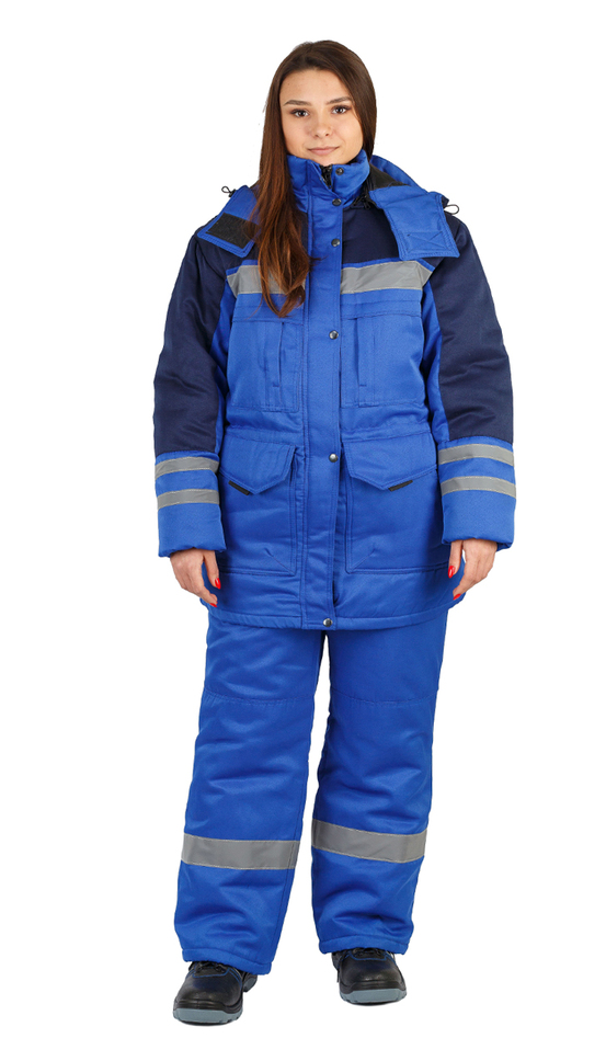 Костюм женский рабочий "Сибиряк" зимний куртка, П/К васильковый с темно-синим и СОП