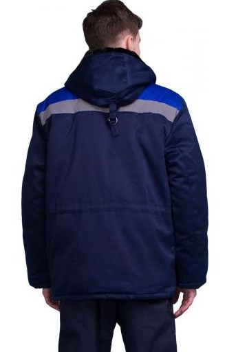 Куртка мужская рабочая "Бригадир " зимняя с мех. воротником т-синяя с васильковым тк. Смесовая
