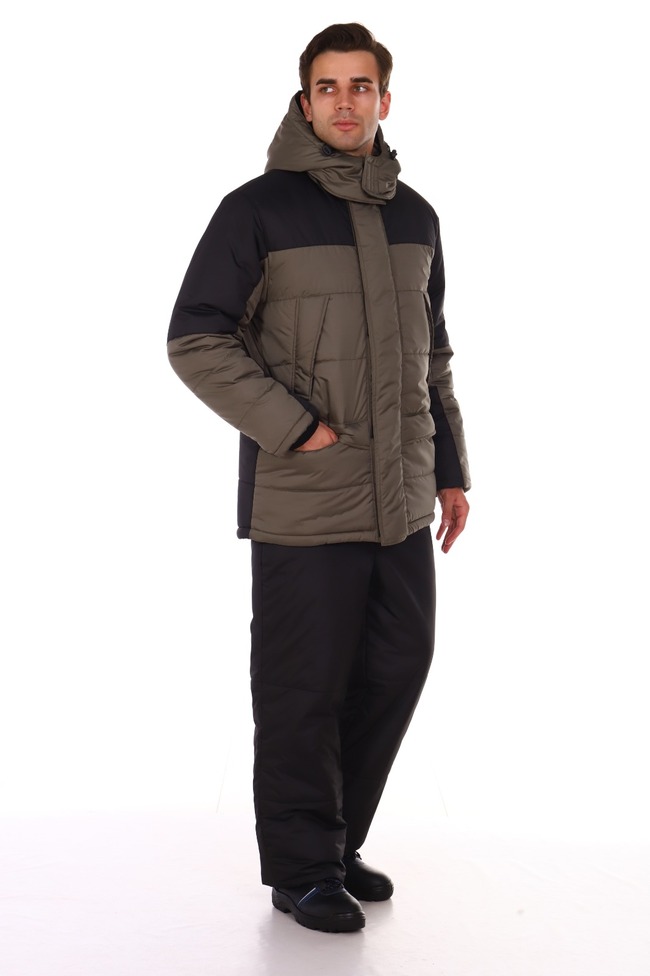 Куртка мужская "Урал-Комфорт Люкс" рабочая зимняя хаки с черным тк. Дюспо