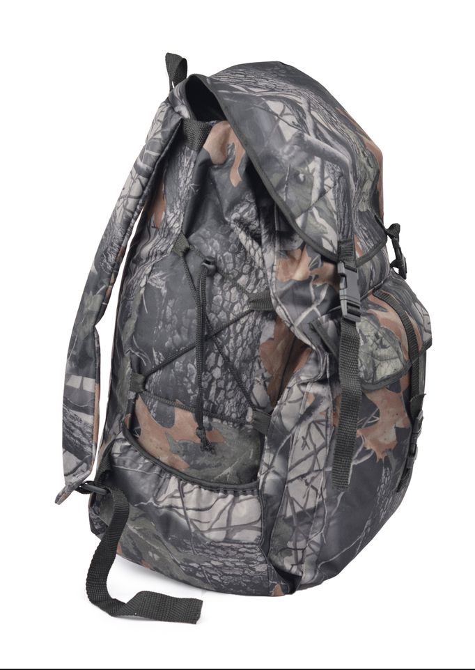 - Недорогой практичный рюкзак ОХОТА выполнен из ткани оксфорд 600D с водоотталкивающей пропиткой, которая защищает от осадков и облегчает чистку изделия. Упрощенная конструкция имеет один основной отсек, горловина которого утягивается шнуром и фиксируется при помощи кулиски. Для максимальной защиты рюкзак закрывается откидным клапаном с фиксацией на два ремешка с фастексами. Извне имеются три накладных карман. По бокам предусмотрена шнуровка для утяжки. Анатомическая прокладка на спинке. Плечевые лямки регулируются по росту. Подходит для охоты, рыбалки и активного отдыха. Расцветка КМФ в ассортименте.