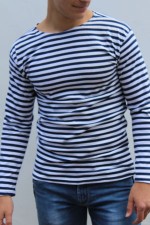 - Летняя тельняшка-флотская нательная фуфайка с длинными рукавами и темно-синими полосками. Плотность 160гр./м2